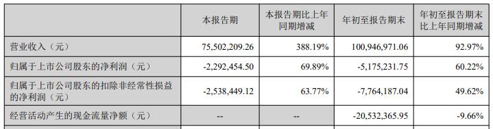中国经济网北京10月29日讯 *圣青岩(301288.sz)近日发布2025年三季度报告显示,今年前三季度,公司实现营业收入1.01亿元,同比增长92.97%;归属于上市公司股东的净利润为-517.52万元,上年同期为-1。 301.05万元;归属于上市公司股东的扣除非经常性损益的净利润为-776.42万元,去年同期为-1541.14万元;经营活动产生的现金流量净额为-2053.24万元,上年同期为-1872.43万元。 2024年,圣青岩实现营业收入7317.15万元,同比n年下降48.33%;归属于上市公司股东的净利润为-1821.66万元,上年同期为2096.41万元;上市公司股东扣除非经常性损益后的净利润为-2258.57万元,上年为886.93万元;经营活动产生的现金流量净额为-4073.49万元,上年同期为-201.54万元。 *圣青岩于2022年4月22日在深圳证券交易所创业板挂牌上市,股份数量为2,701万股,全部为公开发行的新股。老股未转让,占发行后总股本的25.01%。发行价格为19.09元/股。保荐机构(主承销商)为中信证券股份有限公司,保荐代表人为徐新月、邱荣辉。 *ST青岩上市首日开盘价26.80元,盘中最高触及42.88元,创历史新高。股票上市以来的最高价格。该股目前正处于突破阶段。 *圣青岩募集资金总额为51,562.09万元,扣除发行费用后募集资金净额为44,349.39万元,比原计划增加7,216.33万元。 *圣青岩2022年4月18日发布的招股书显示,公司拟募集资金37,133.06万元,用于广东青岩高端环保装备及开发生产基地项目及增加流动资金。 *圣青岩首次公开发行股票发行费用总额为人民币7,212.7万元,其中保荐及承销费用为人民币5,156.21万元。